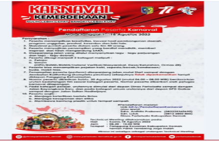 Demak, Jatengnews.id – Setelah dua tahun vakum dampak pandemi Covid-19, Karnaval Kemerdekaan HUT ke 77 RI 2022 di Kabupaten Demak kali ini berjalan meriah, Sabtu (20/8/2022). …