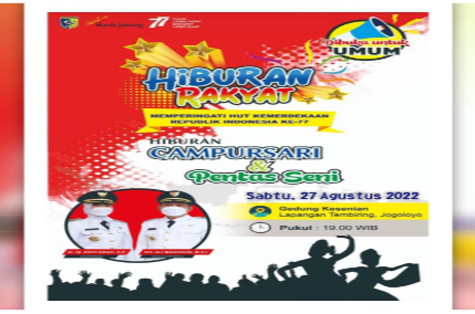 Demak – Bupati Demak Eisti’anah ajak warga masyarakat Kabupaten Demak untuk menyaksikan acara hiburan rakyak memperingati HUT Kemerdekaan Republik Indonesia Ke – 77. Acara hiburan …